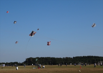 午後は自由凧揚げ。青空にたくさんの凧が揚がりました